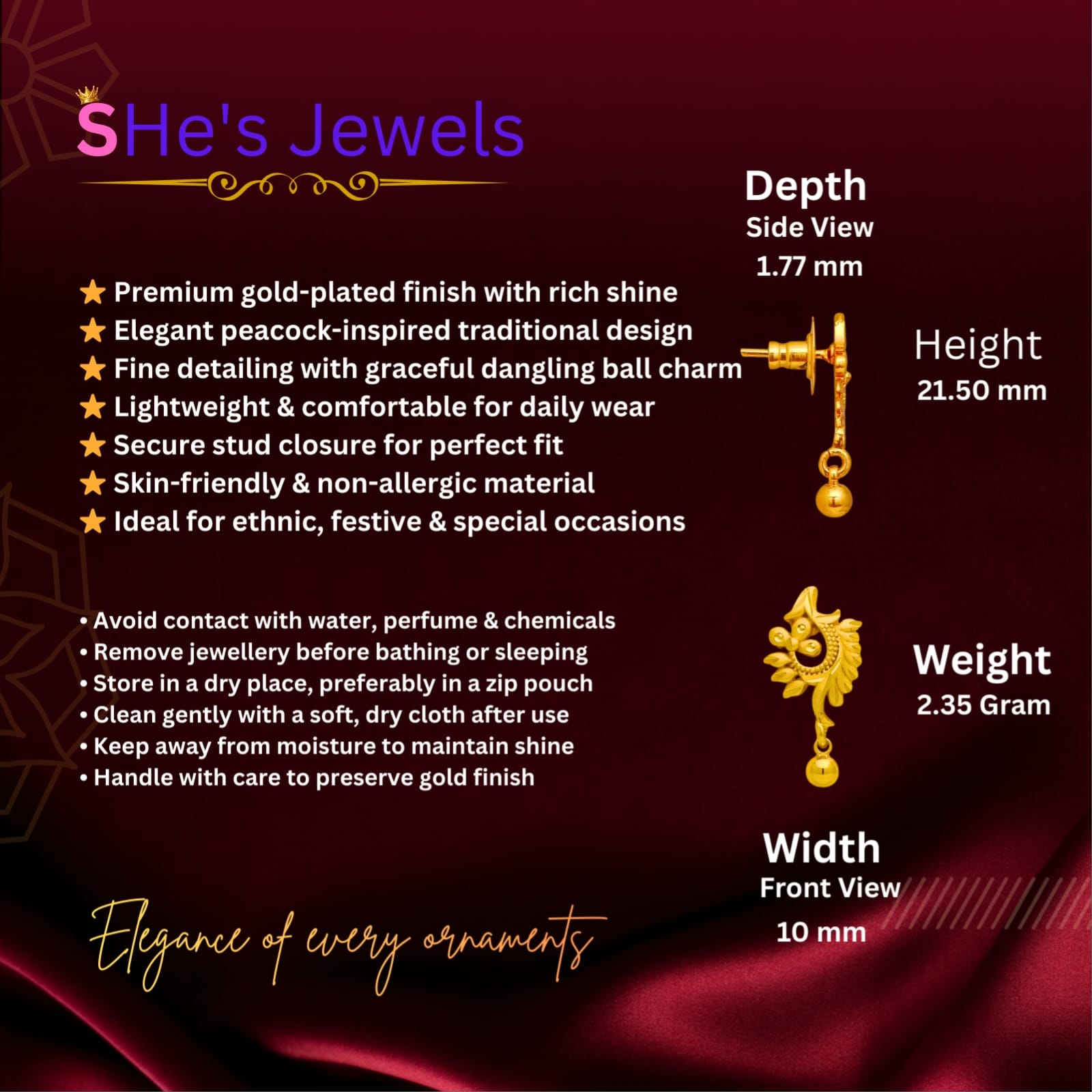 | Sales Package | 1 Pair Earring |