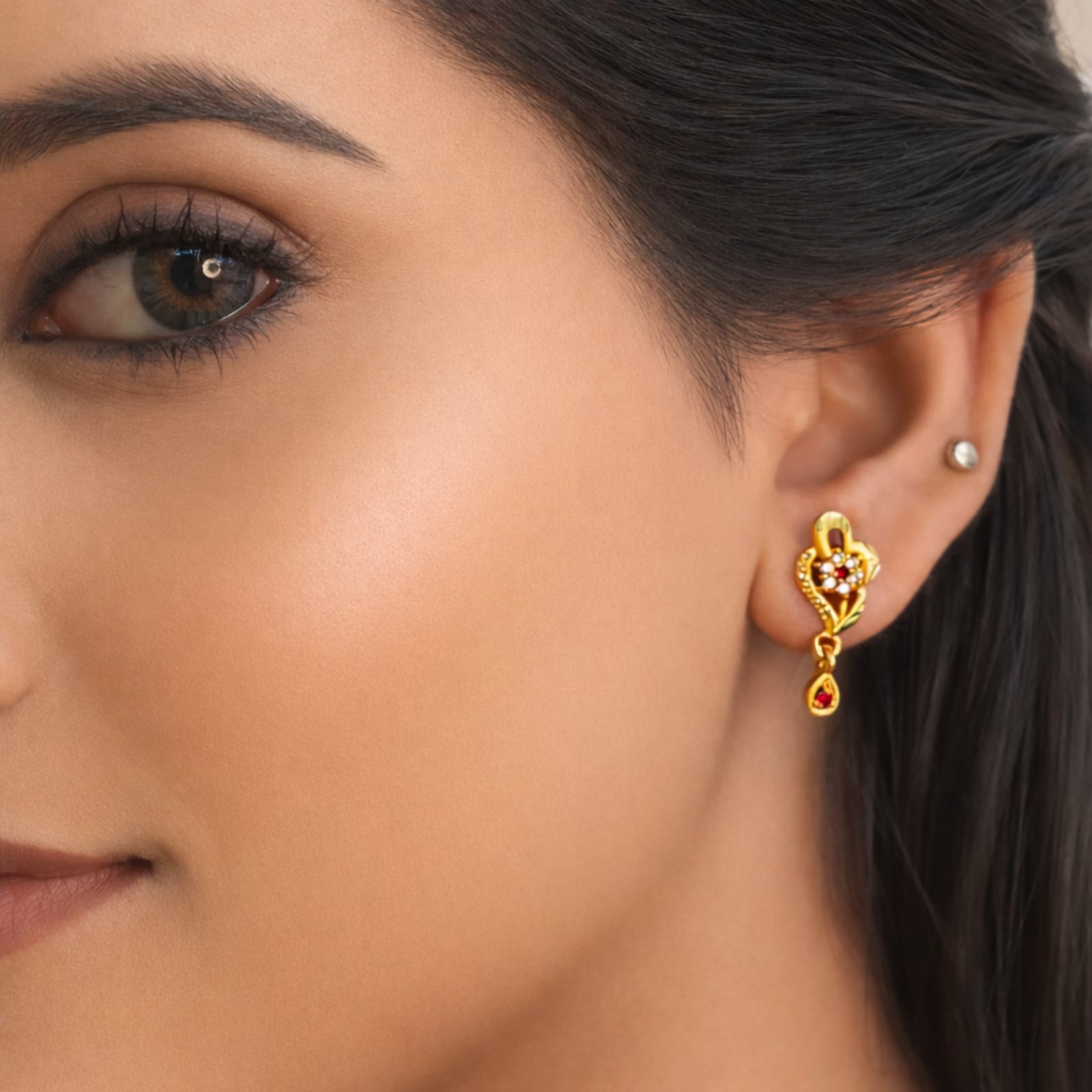 Style Tip: Pair these with a classic red saree or a simple black cocktail dress to let the ruby tones truly shine.