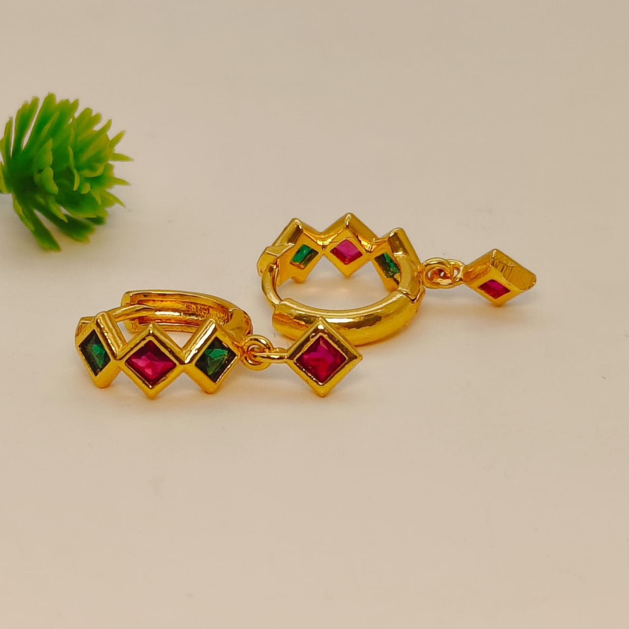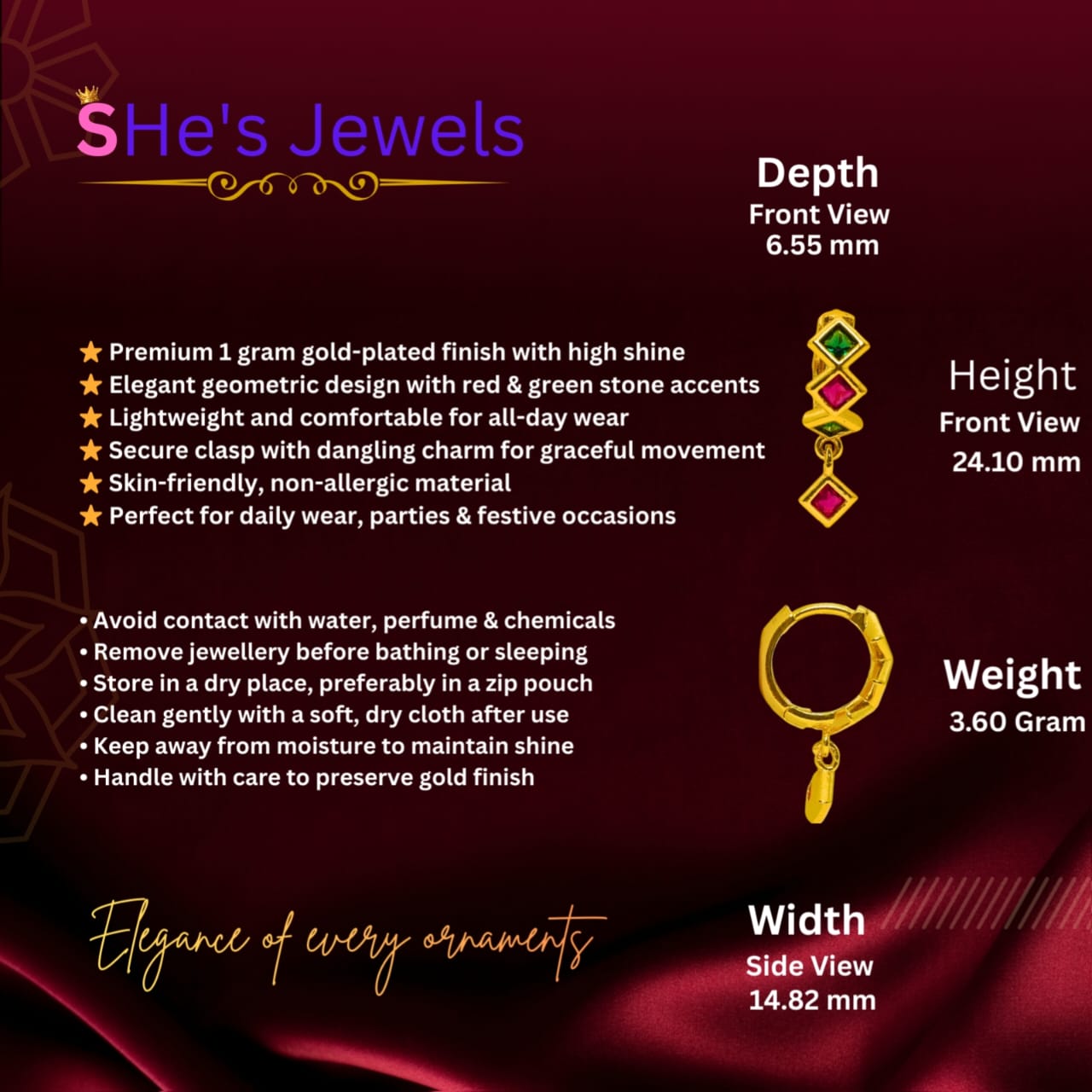 Vibrant Stone Work: The ho70ops are meticulously set with alternating princess-cut synthetic gemstones in rich emerald green and ruby pink.