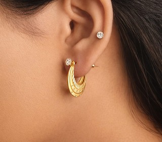 - Statement Silhouette: The wide crescent shape provides the bold look of a hoop with the ease and security of a standard stud fastening.