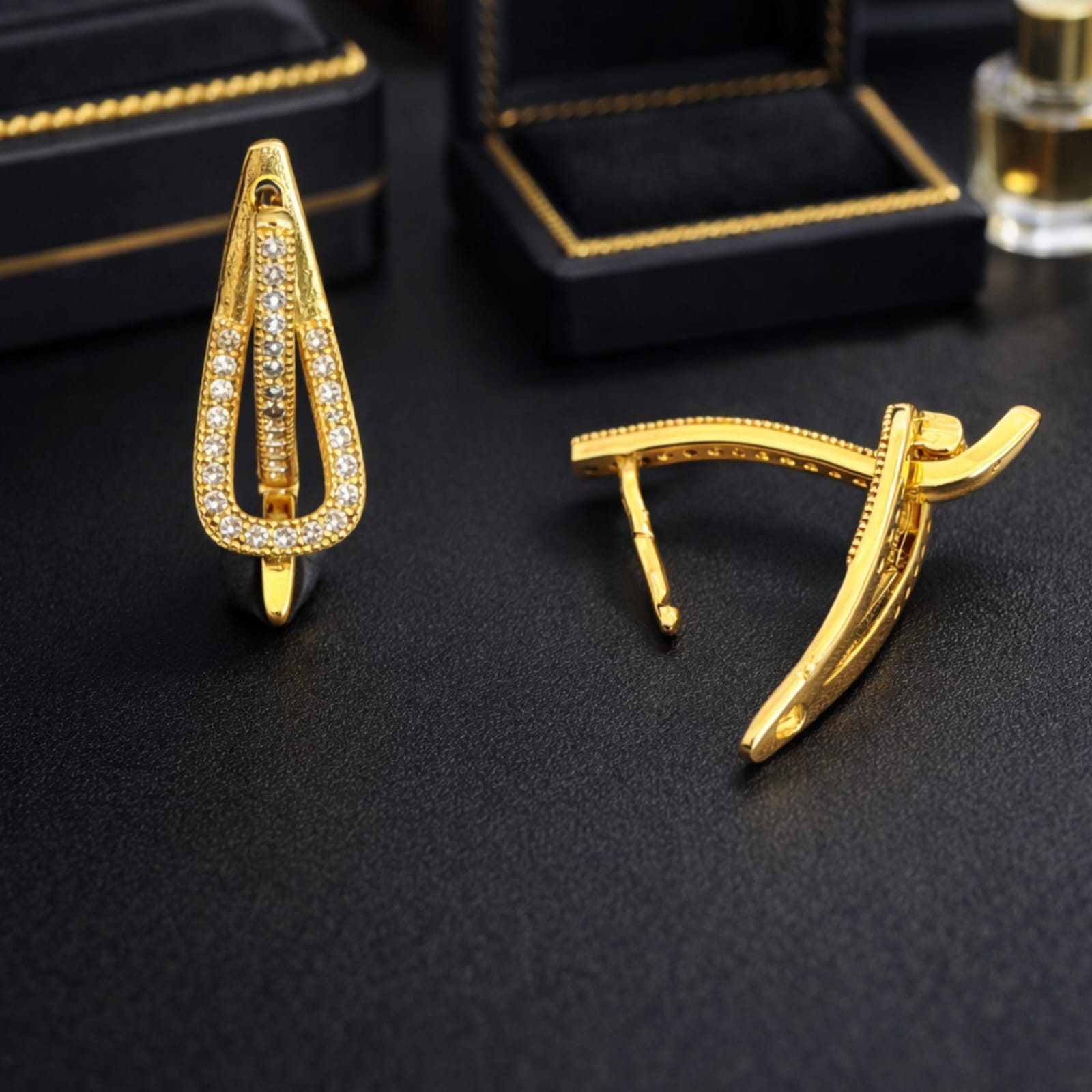 Step into contemporary luxury with these Geometric Interlocking Hoops. A bold departure from traditional motifs, these earrings feature a sophisticated "linked" silhouette that combines the warmth of gold with the brilliant fire of precision-set crystals.
