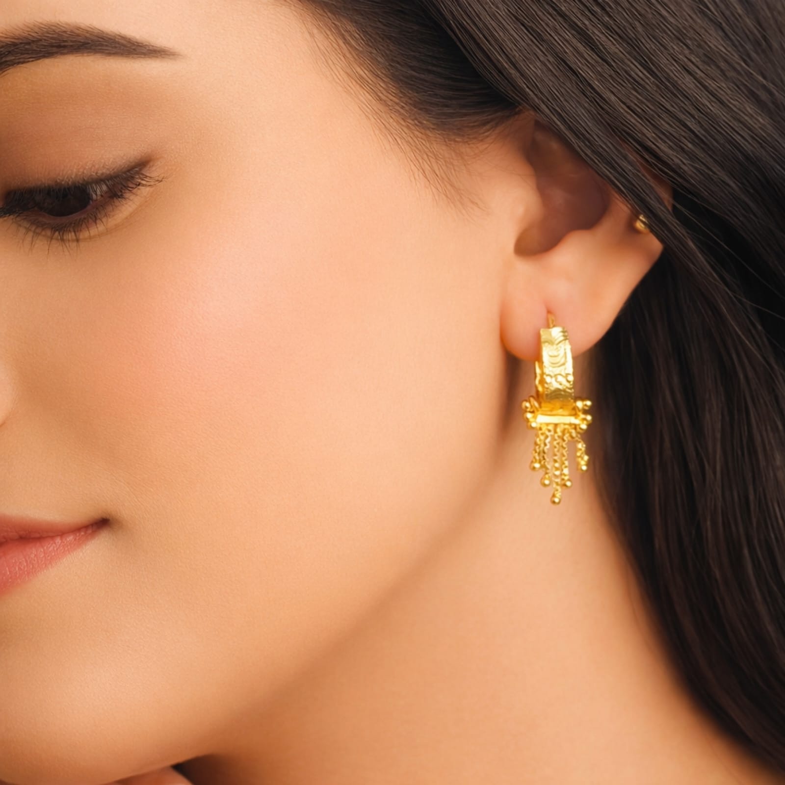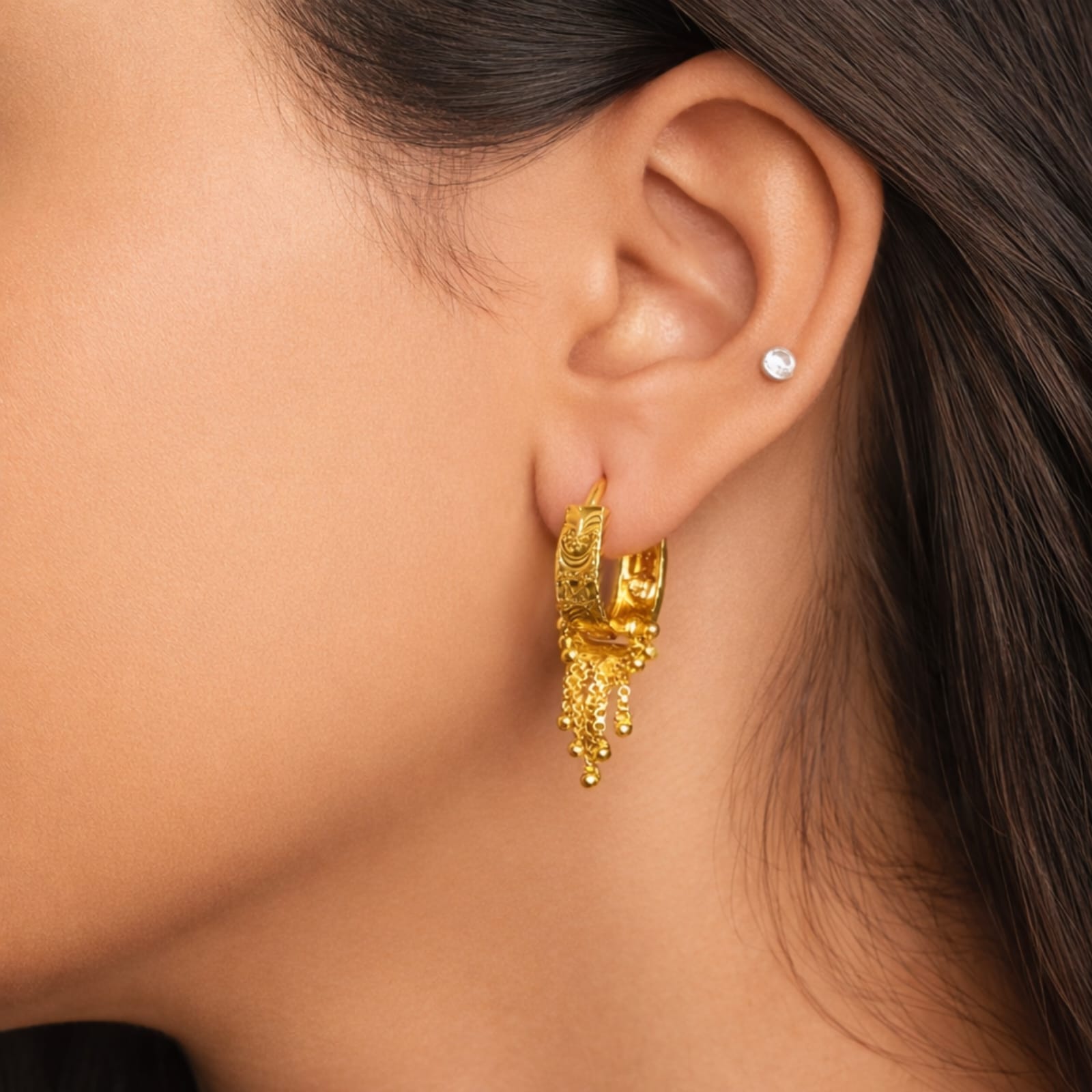 Earring Style:- Bali Hoop with Tassel Drop