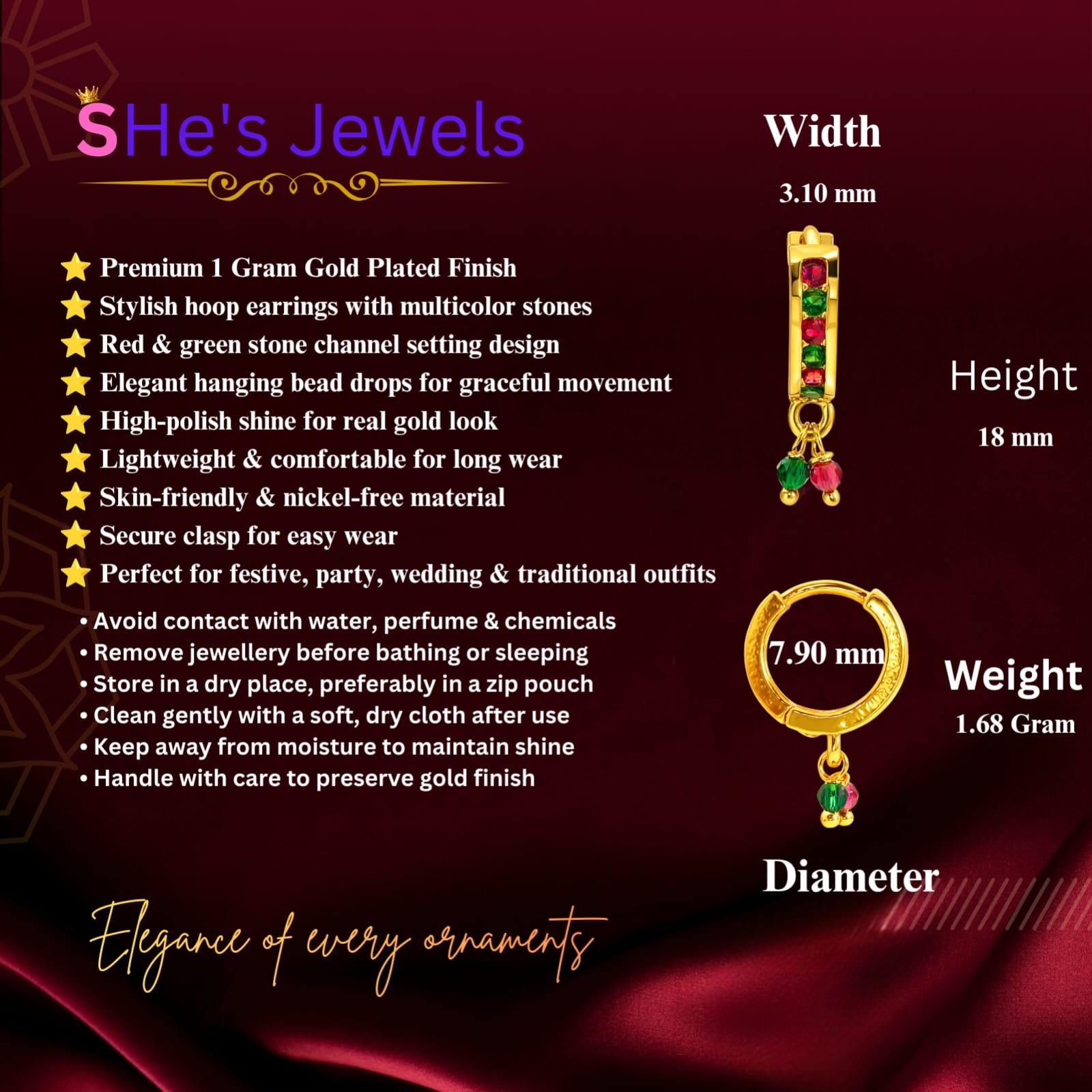 Stone Colors:- Ruby Red & Emerald Green