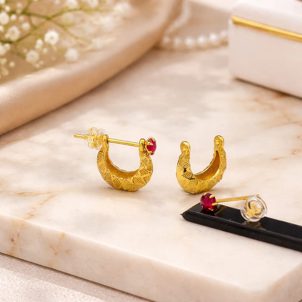 Zig-Zag Textured Ruby Stone Crescent Studs
