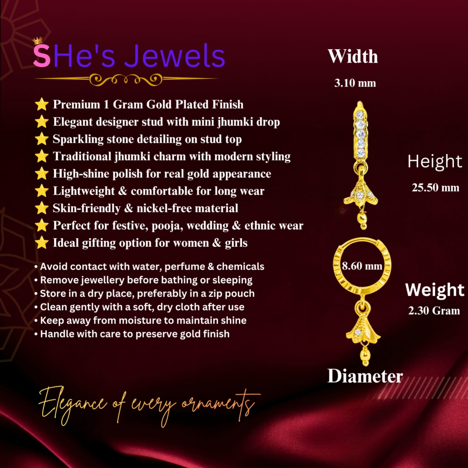 | (A) Earrings Dimension | |
