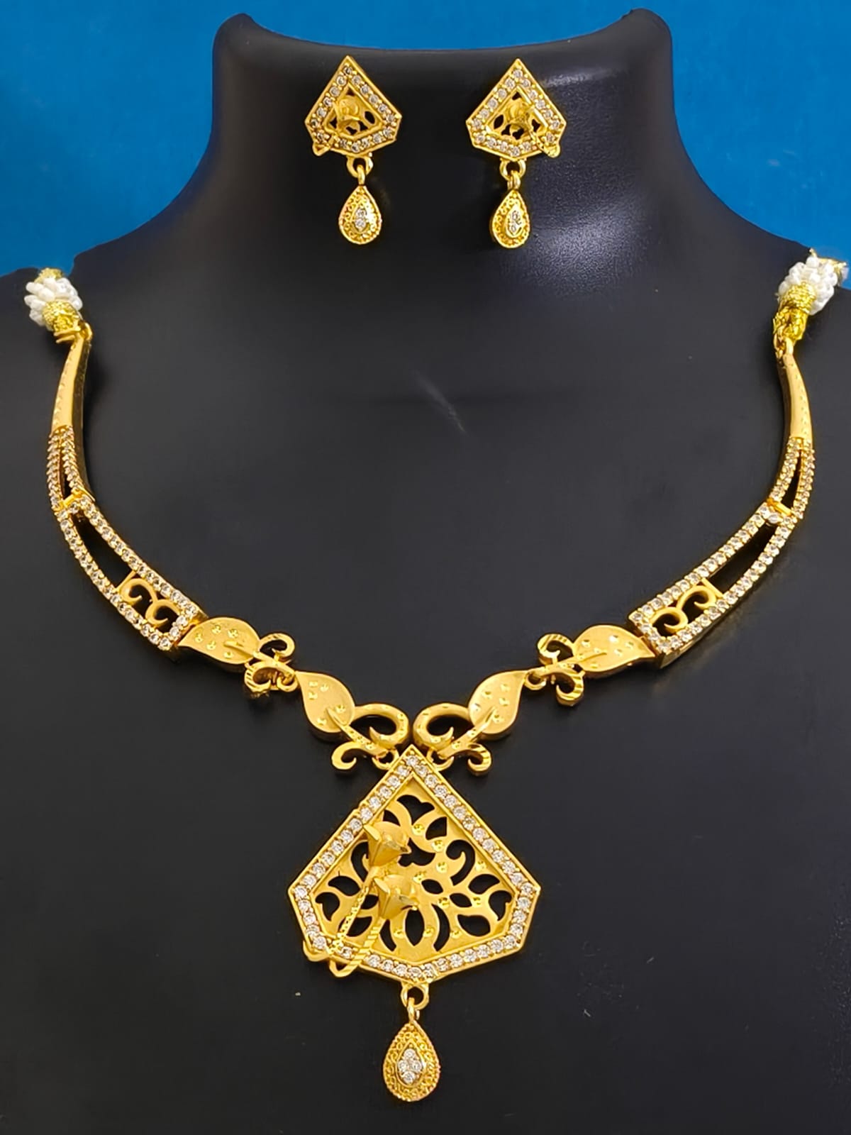 Elegant Gold-Plated CZ & Filigree Necklace Set