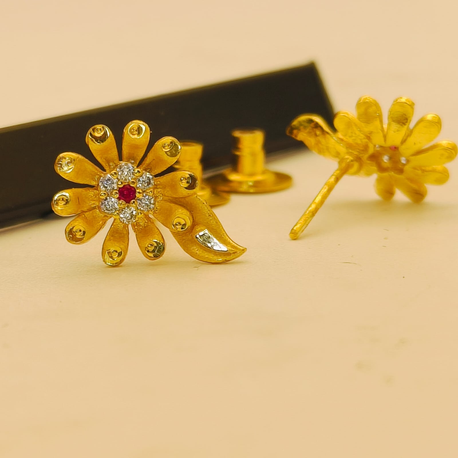 Floral Blossom Ruby Accent Gold Earrings
