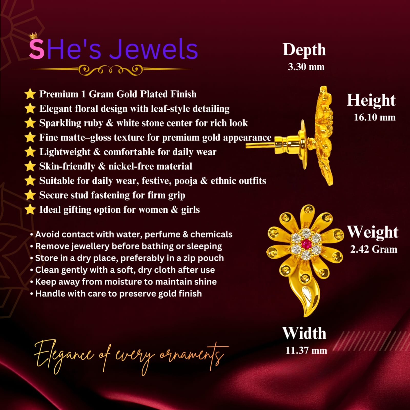| Sales Package | 1 Pair Earring |