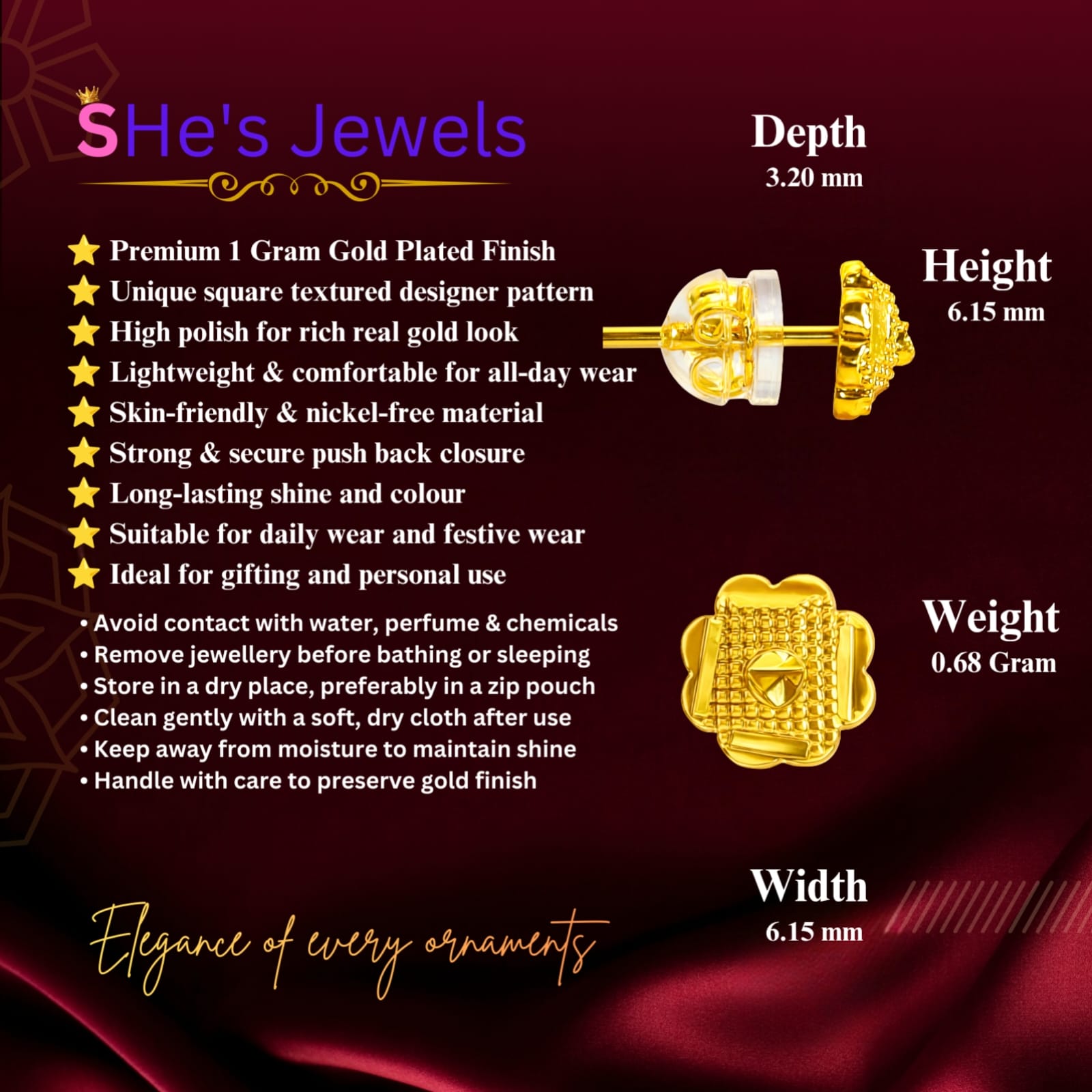 - Base Material: High-quality hypoallergenic alloy with premium 22K Gold Plating.