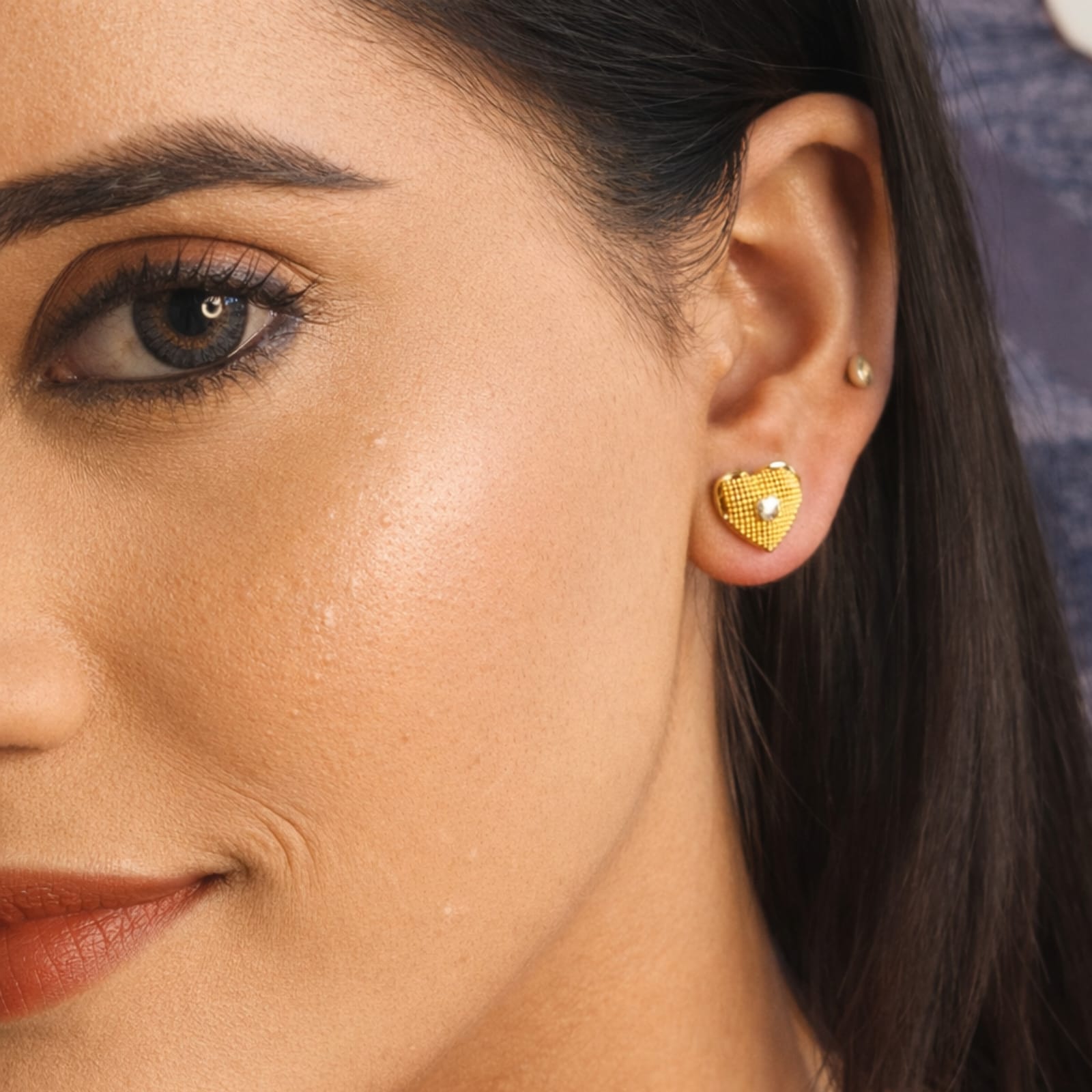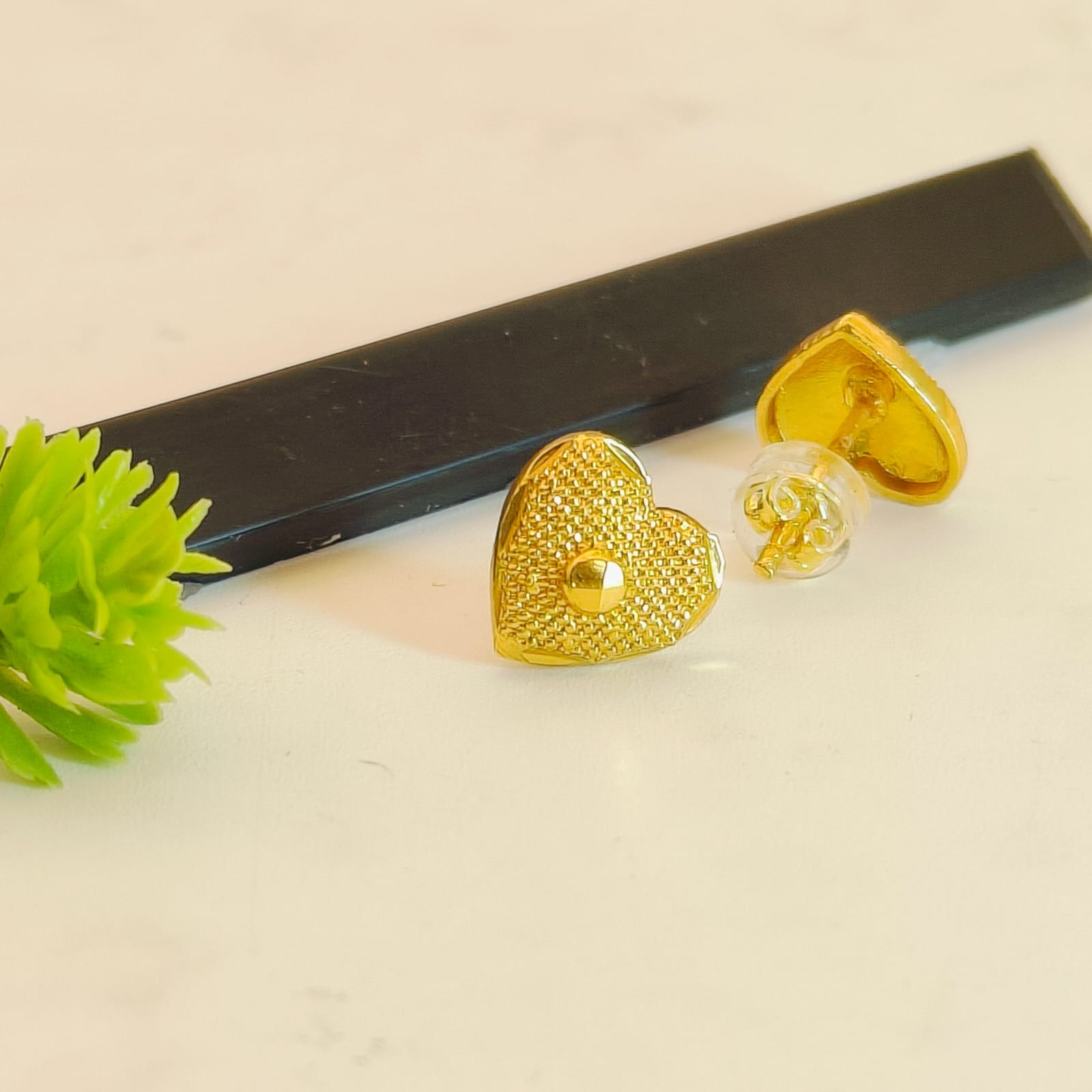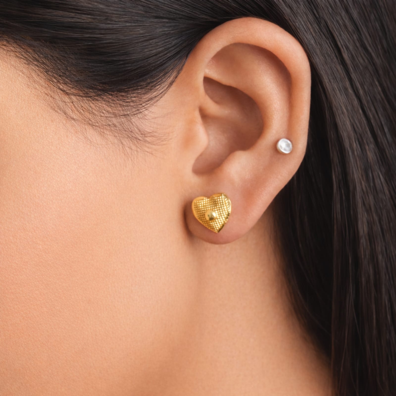 Elevate your jewelry collection with these exquisite Textured Gold Heart Stud Earrings. Blending a classic symbol of love with intricate artisanal craftsmanship, these earrings are designed to offer a sophisticated shimmer for any occasion.