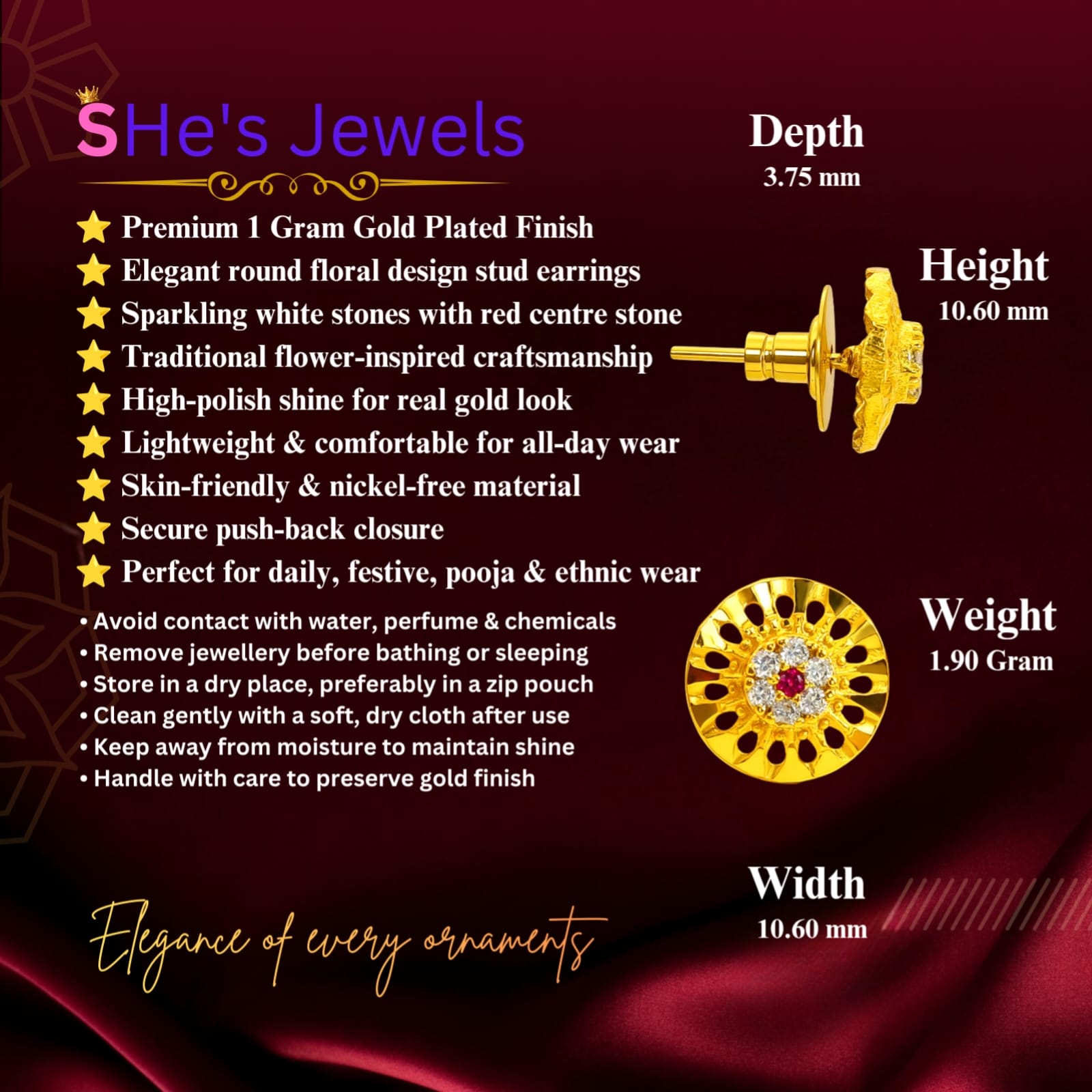 - Premium Security: Comes with heavy-duty gold-tone screw-back or friction-fit bell backings, ensuring a secure and comfortable fit for all-day wear.