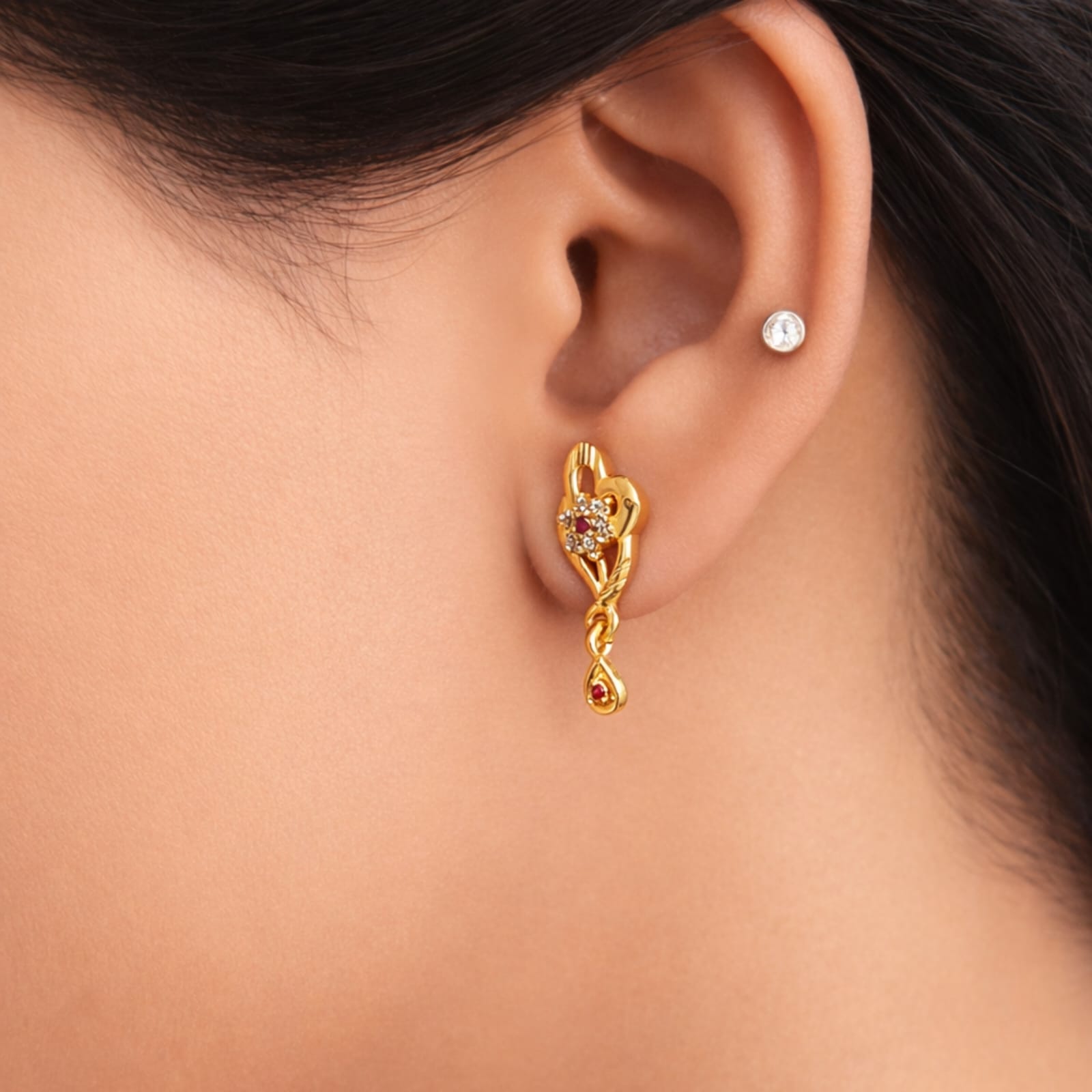 - Dangling Detail: A dainty teardrop charm hangs gracefully, featuring a matching ruby-red stone for a cohesive and sophisticated finish.