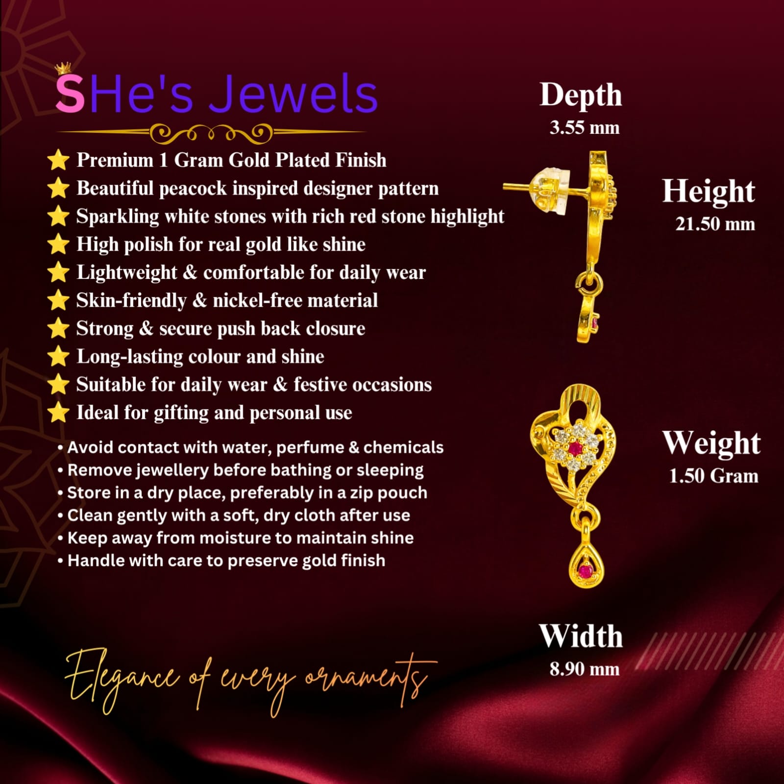 Embrace timeless elegance with these captivating drop earrings, featuring a vibrant splash of color. This pair combines the romantic allure of a heart-shaped silhouette with the classic beauty of a ruby-toned floral center, making it a standout addition to any jewelry box.