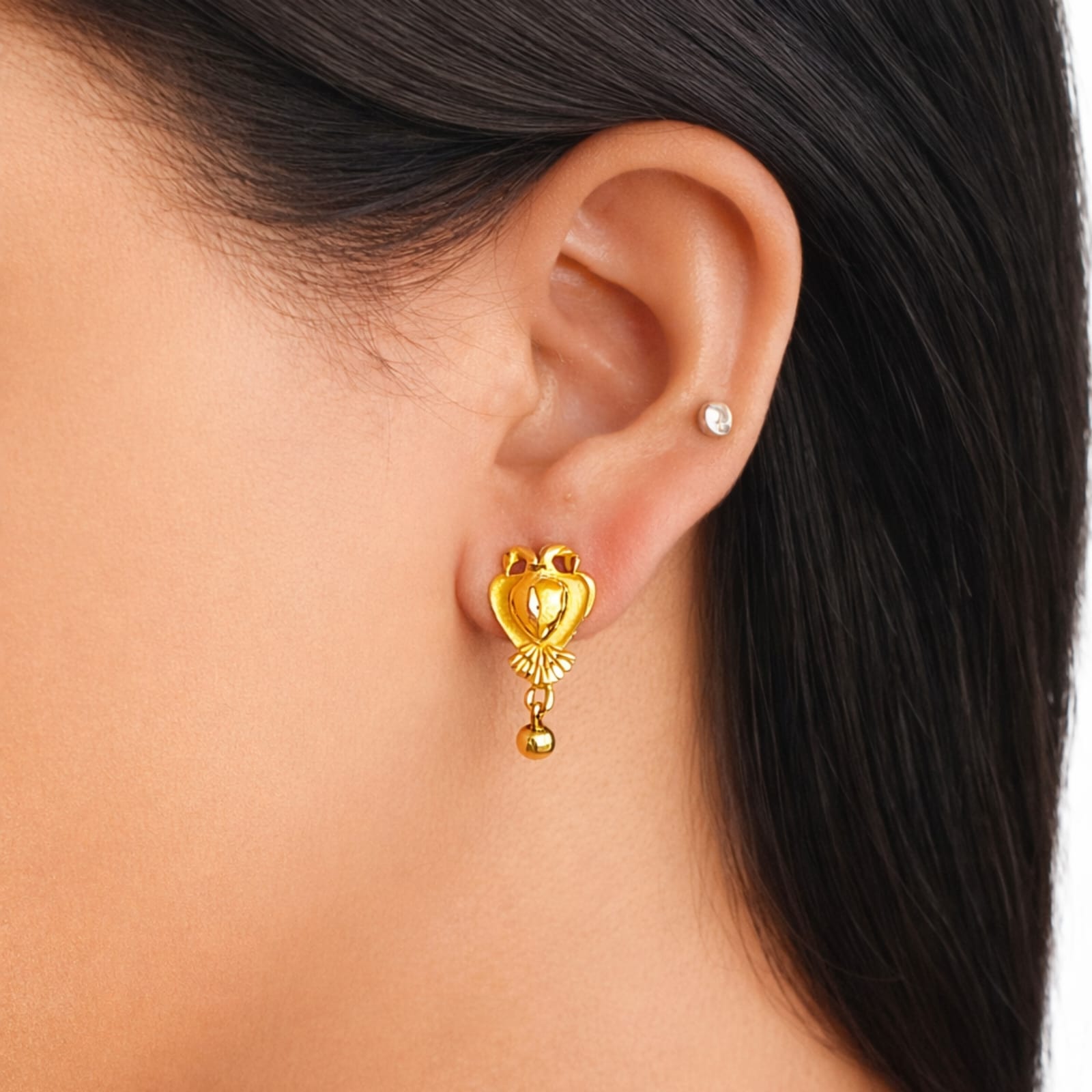 - Polished Sphere Drop: A hanging gold bead provides the perfect balance to the structured crest above.