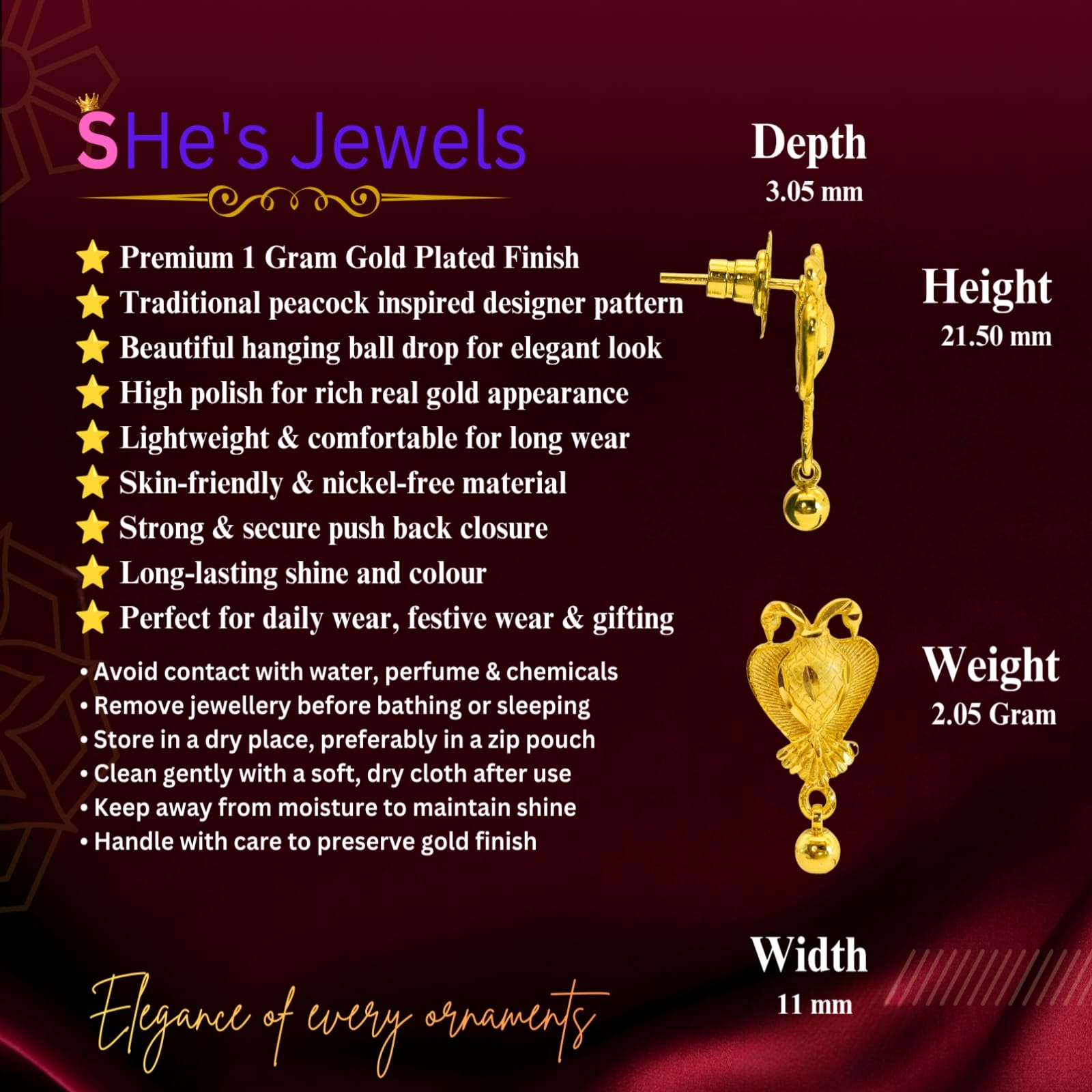Regal Gold-Plated Peacock Filigree Drop Earrings