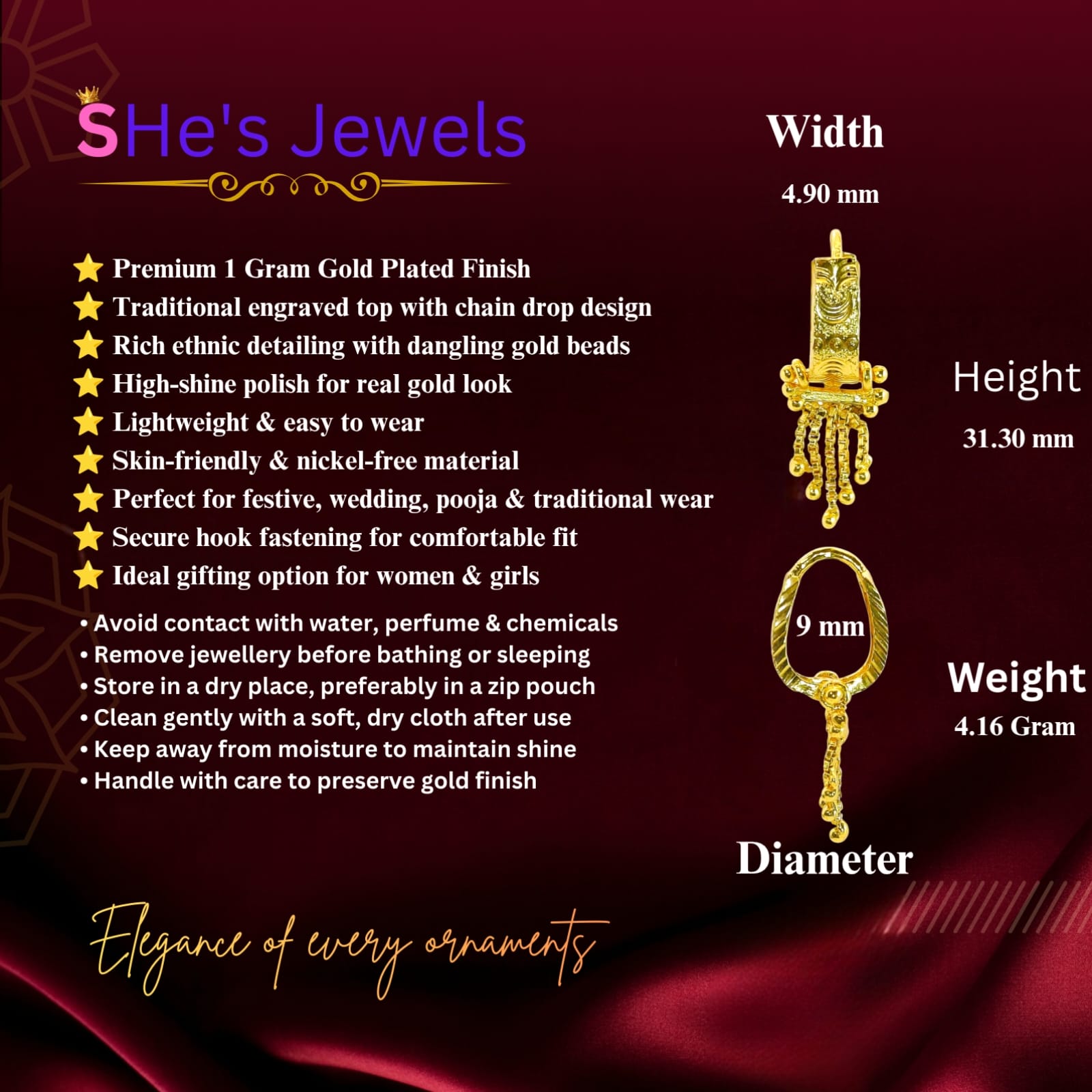 - Premium Gold Tone: Crafted with a rich, high-shine gold finish that offers a luxurious look for both festive and formal occasions.