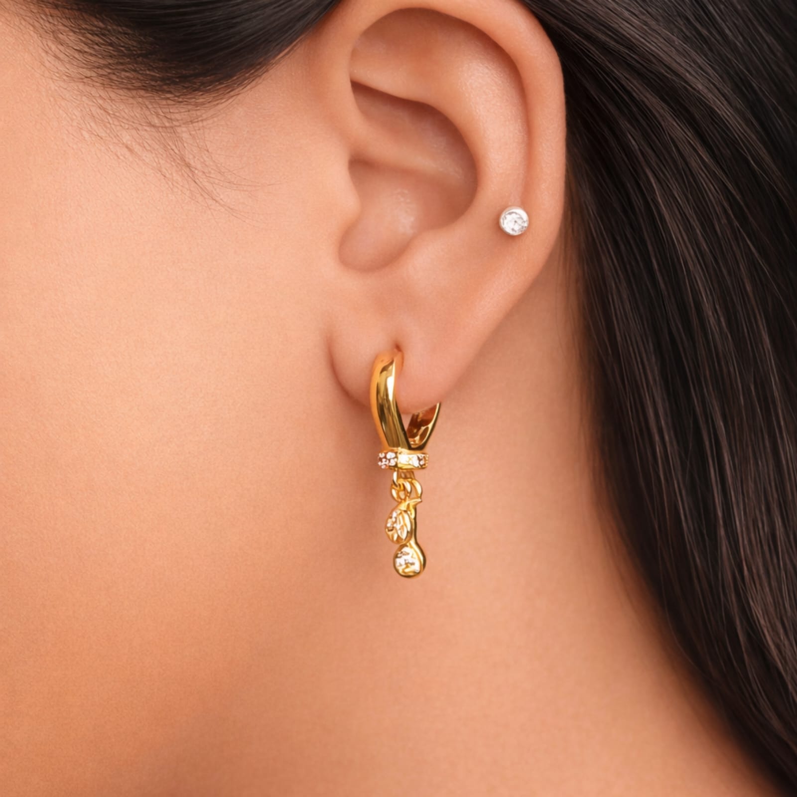 Earring Style:- Huggie Hoop with Tiered Dangle