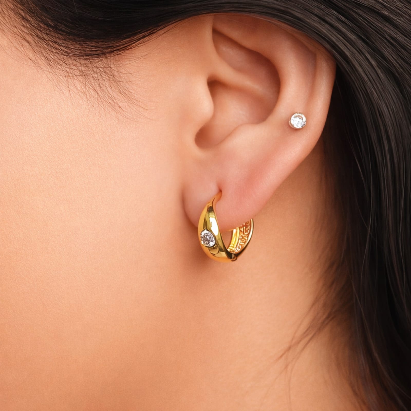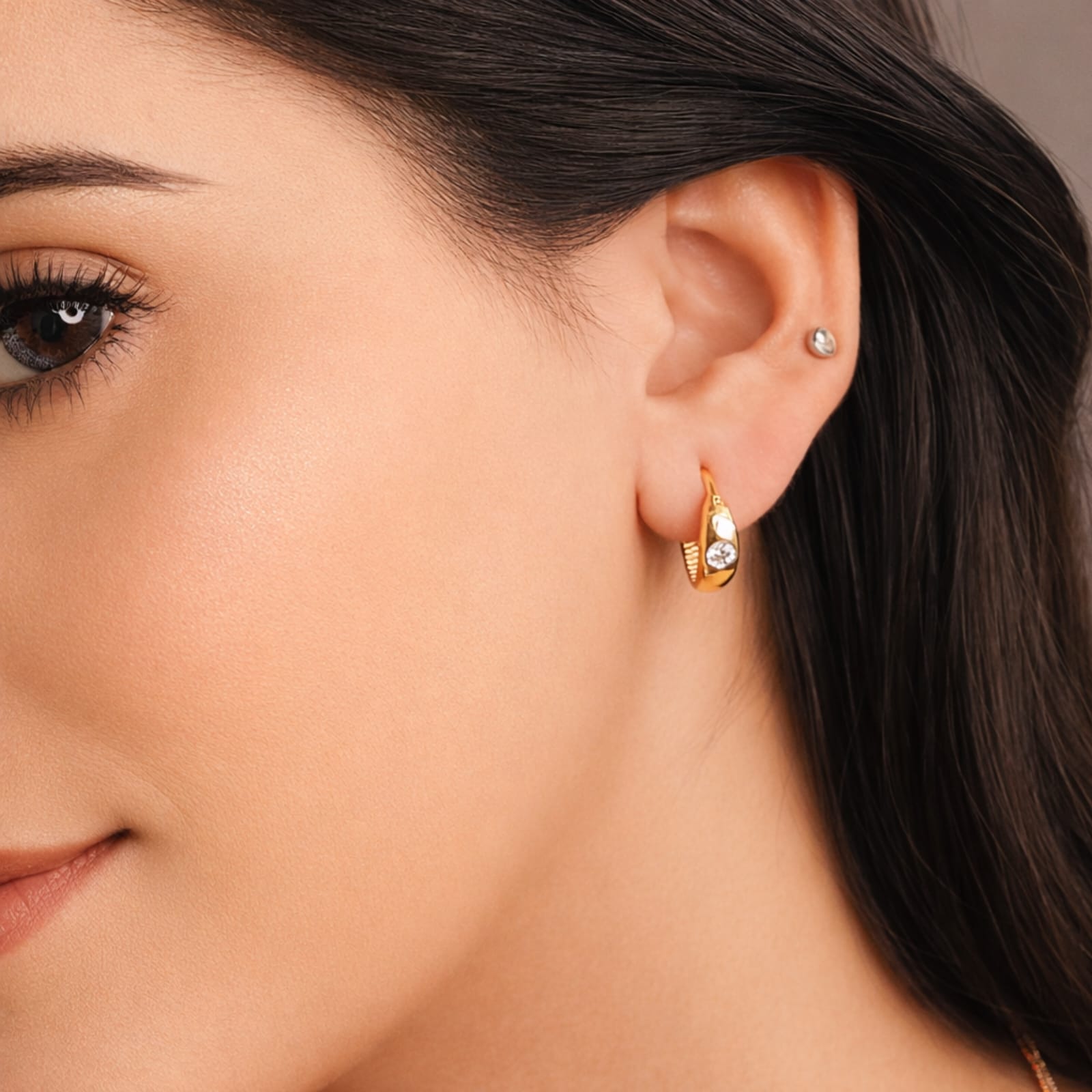 Earring Style:- Huggie Hoop / Solitaire Stud Hybrid