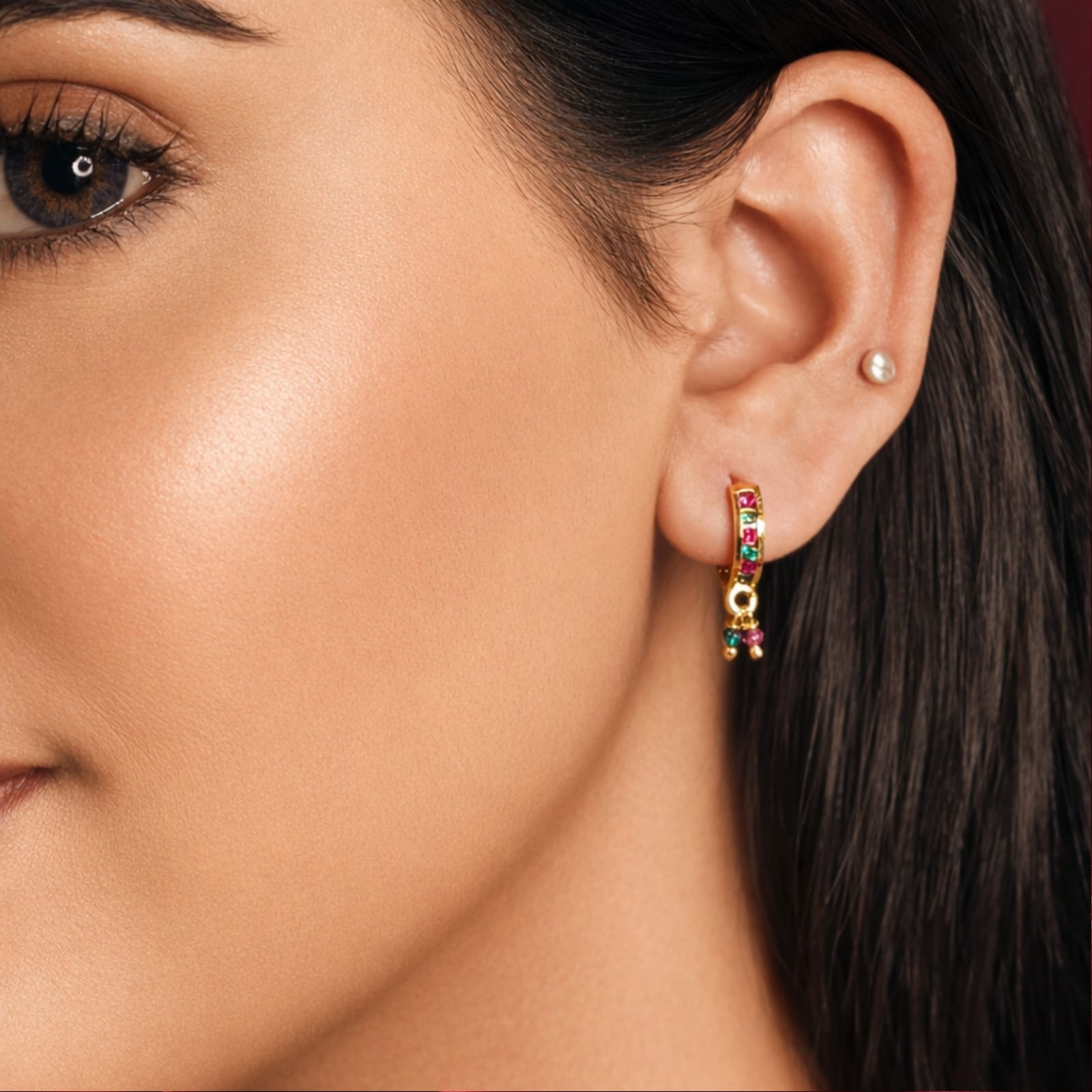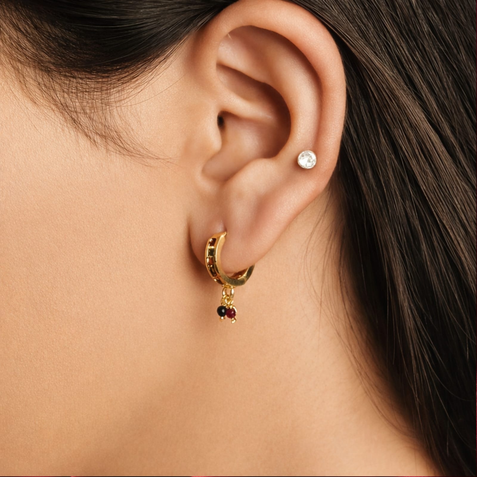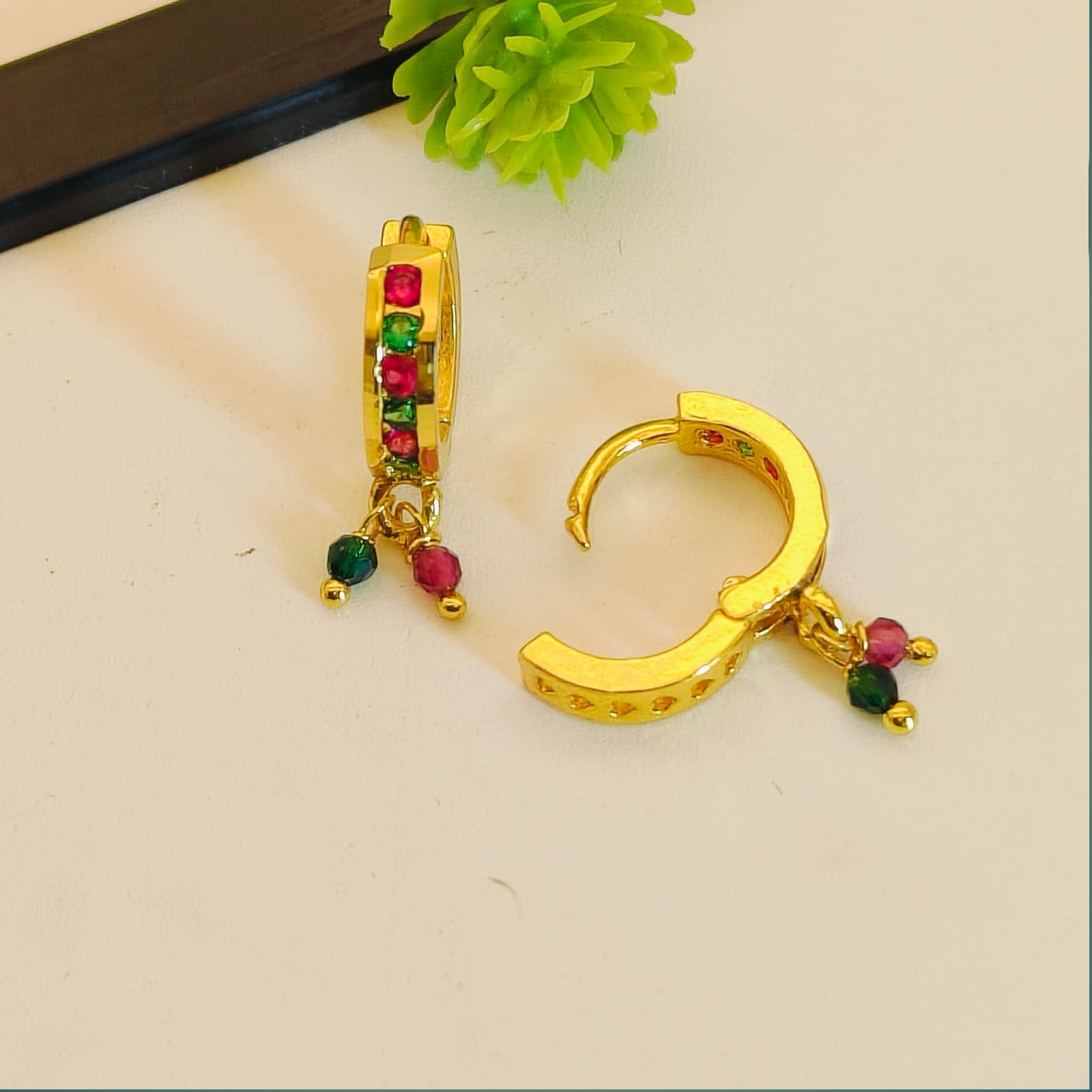 Earring Style:- Multi-Color Huggie with Bead Dangles