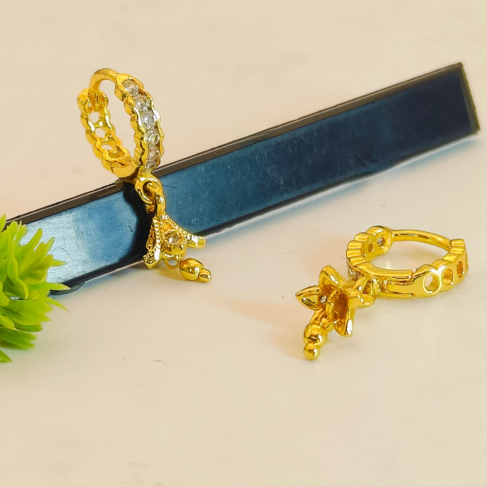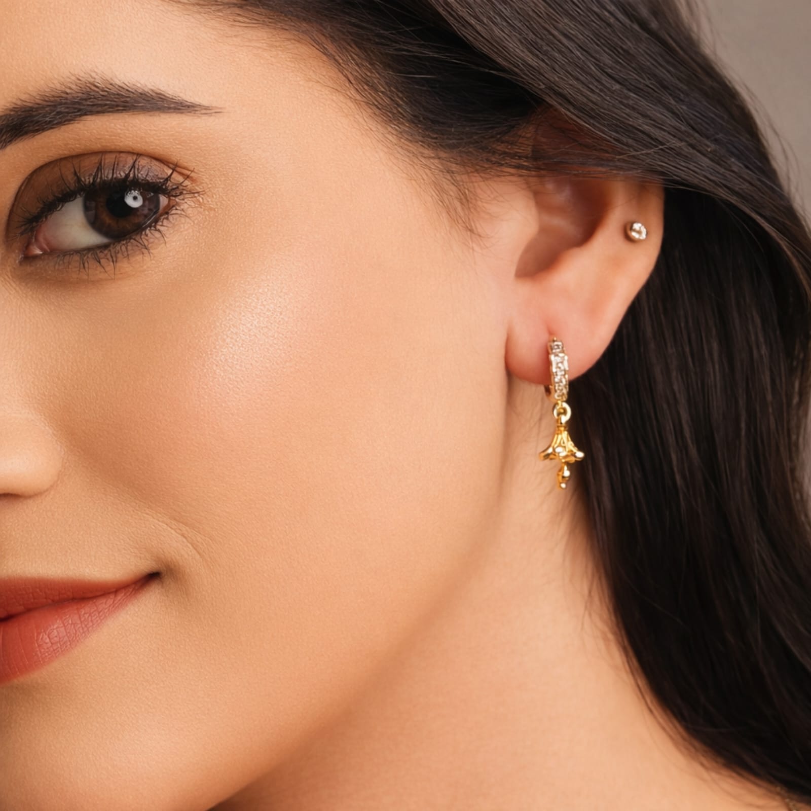 Earring Style:- Huggie Hoop with Floral Drop