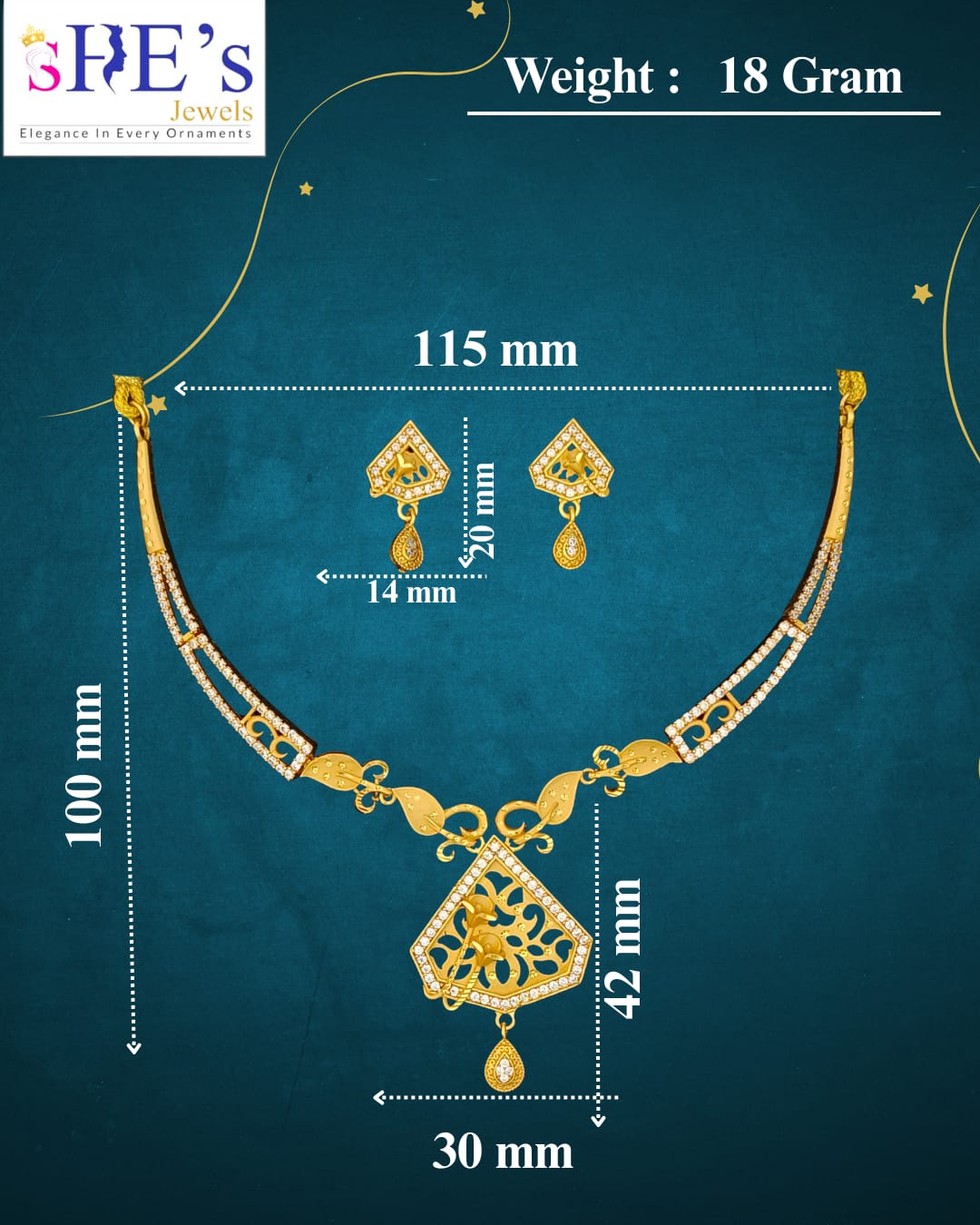 This exquisite jewelry set features a stunning, gold-plated necklace and matching dangle earrings, perfect for adding a touch of traditional elegance to any occasion.