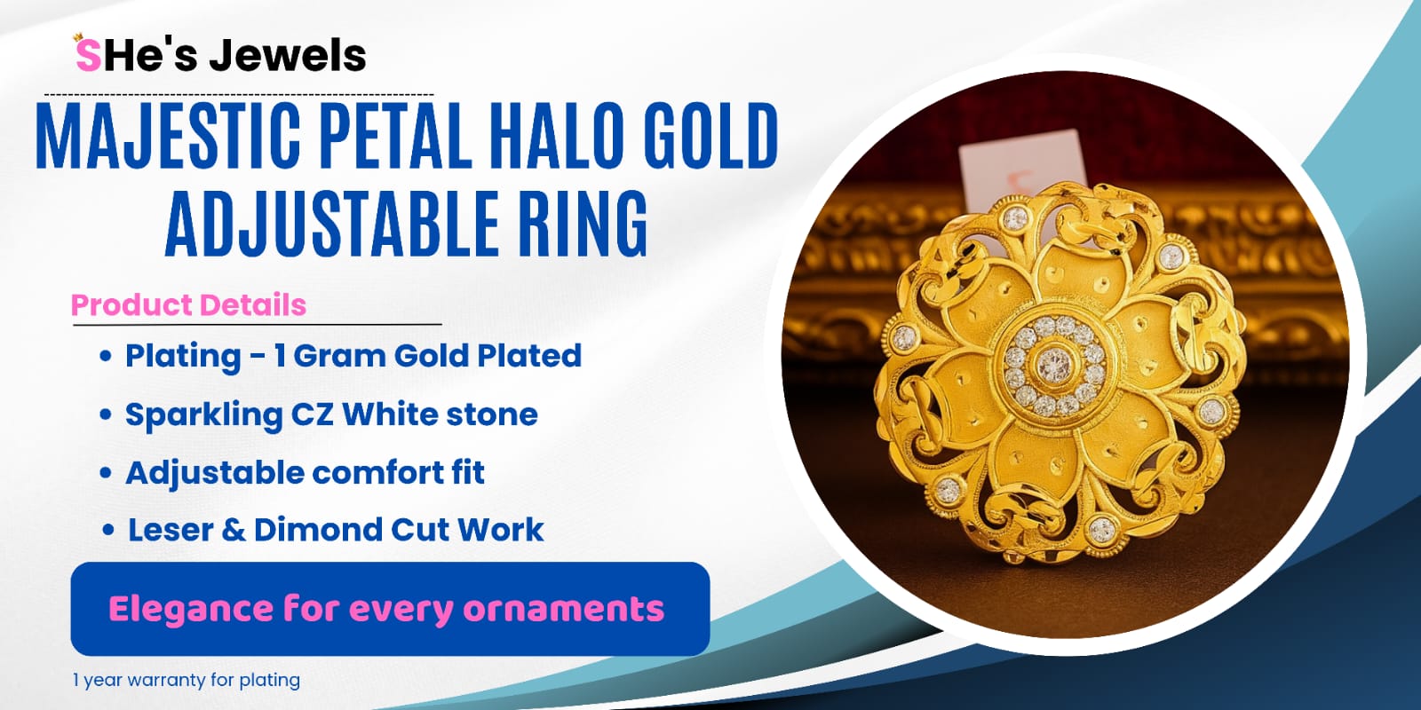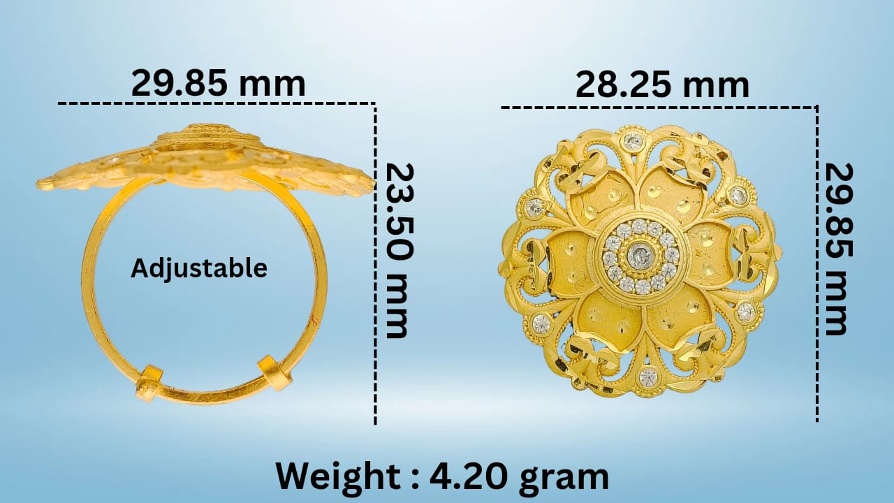 - Product Type: Statement Ring / Cocktail Ring with an adjustable shank (as seen in the side view).