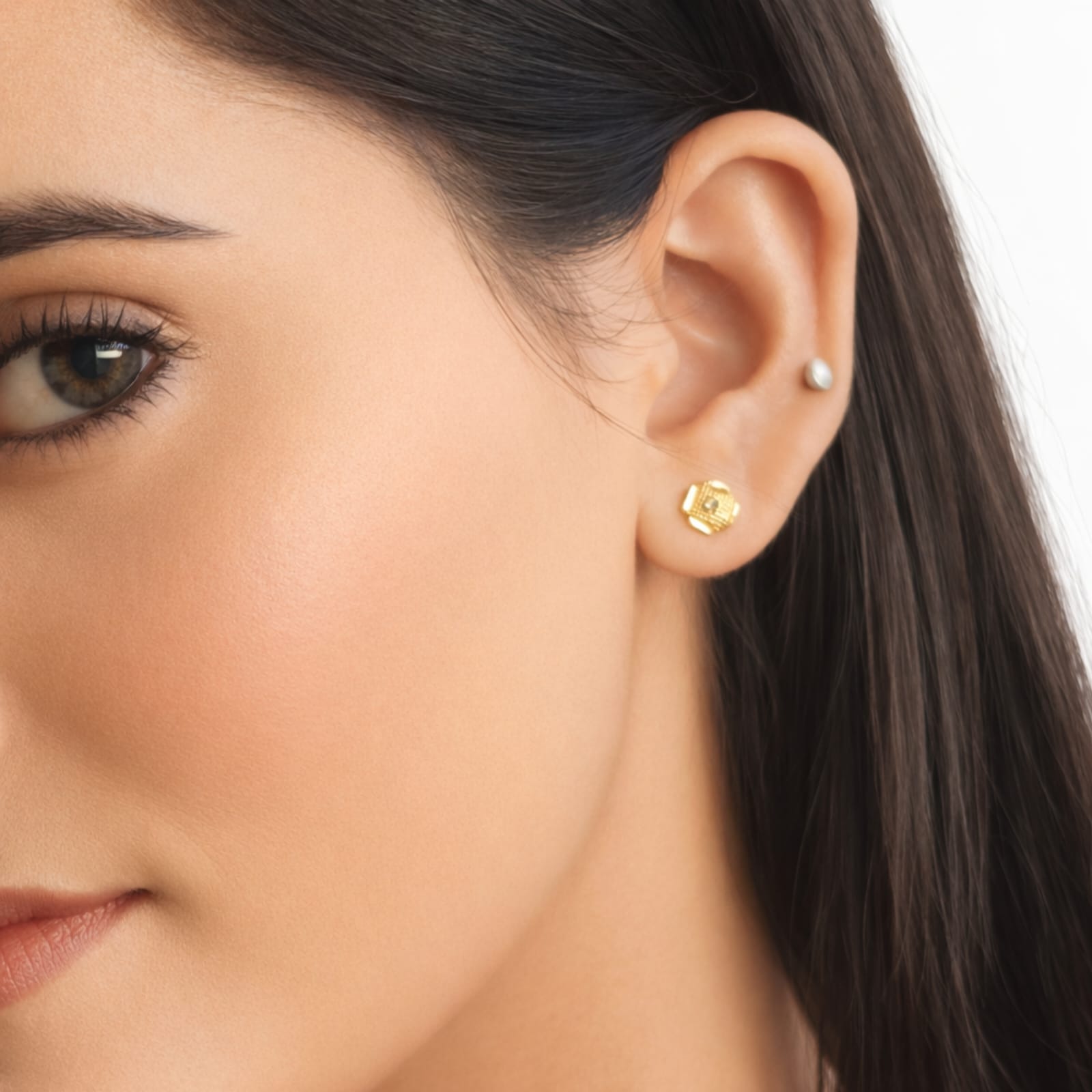 Add a touch of structured elegance to your ensemble with these Textured Square Stud Earrings. These earrings feature a sophisticated four-sided design that balances bold geometric shapes with intricate, fine-detailed craftsmanship.